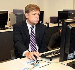 Майкл Макфол (1963 г.р.) — известный американский специалист по цветным революциям. Работал послом США в России, однако не преуспел в деле организации белоленточного цветного переворота в России в 2011—2012 гг. (посла-революционера подвела российская несистемная оппозиция) и незадолго до Олимпийских игр в Сочи объявил о своём уходе с поста. Макфол с горечью констатировал, что ему так и не удалось разрушить миф о США, как о главном спонсоре «оранжевых революций» на планете. [1] На должности посла США в России Макфола сменил Джон Теффт, ещё один специалист по цветным революциям.