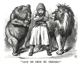 Большая Игра — геополитическое соперничество между Британской и Российской империями за господство в Южной и Центральной Азии в XIX-начале XX веков. В данной статье географические рамки этого термина будут расширены за счет Ближнего и Дальнего Востока ввиду того, что Азия в обозначенный период стала главным направлением экспансии как для Британской[4], так и для Российской Империи[5]. Конфликты двух империй в это время были и за пределами Азии — в Северной Америке[6], Южной Африке[7] и Польше[8], но их значимость сильно уступает Большой Игре.