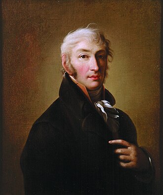 Николай Михайлович Карамзин (1766—1826) — новатор русского языка, переводчик (с английского, немецкого, французского), писатель и историк. В молодости, до поездки за рубеж, взгляды имел довольно либеральные. Но увиденные им во Франции во время революции и последовавшей диктатуры события, сделали из него консерватора и монархиста, причём более ярого, чем был сам монарх, Александр I. Об этом свидетельствует и главный труд Карамзина — «История государства Российского» — и даже то, что эта работа не была завершена из-за болезни, подхваченной на Сенатской площади, где историк наблюдал восстание декабристов (считается, что болезнь развилась также от горя, вызванного вестью о смерти Александра I).