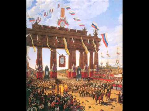 "Славься, славься, ты Русь моя". Музыка — Михаил Глинка (1836). Слова — Егор Розен (1893) и Сергей Городецкий (1939). Из оперы «Иван Сусанин» («Жизнь за Царя»).