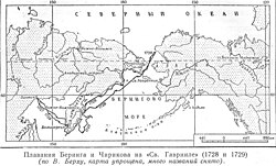 Позднее, в 1732 г. было принято решение о проведении Великой северной экспедиции, которая окончательно нанесла на карту всё побережье северо-восточной Азии. Но ещё прежде чем эта новая масштабная экспедиция началась, построенный Берингом для Первой Камчатской экспедиции бот «Святой Гавриил» под командованием геодезиста М. С. Гвоздева и подштурмана И. Фёдорова стал первым русским судном, подошедшим к берегу Северной Америки, и первым европейским судном, достигшим Аляски (21 августа 1732 года).