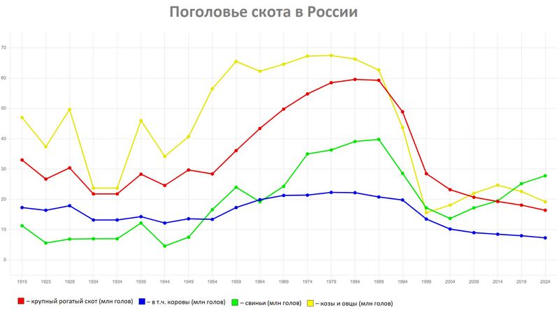 Поголовье скота в России (общий график). Подробнее – см. здесь.