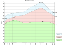Население Латвии падает с момента развала СССР и на начало 2021 года составляло, согласно проводившейся в электронном формате переписи, 1 миллион 893 тысячи человек.[2]